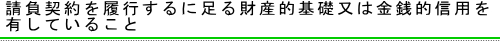 請負契約を履行するに足る財産的基礎または金銭的信用を有していること